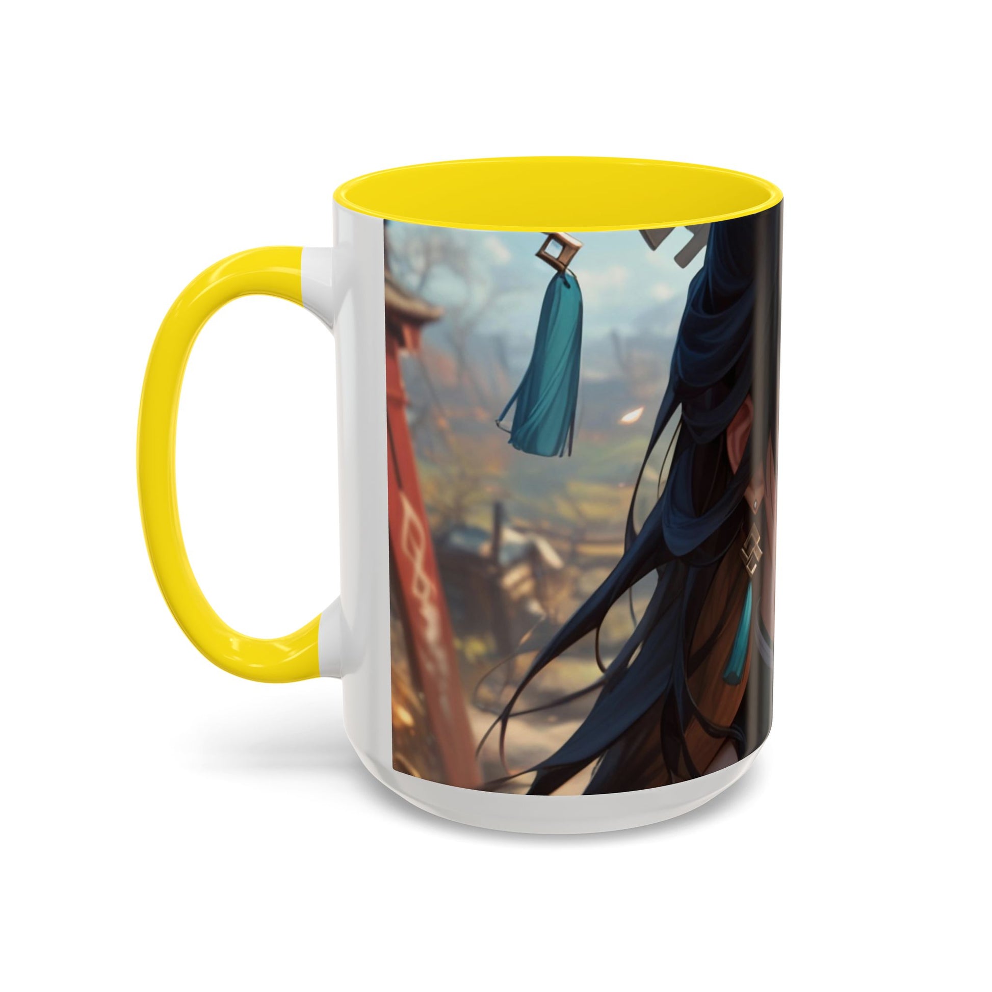 Upgrade your morning ritual with this accented ceramic mug. Designed for both comfort and aesthetics, it features a sleek glossy finish, eye-catching color contrast, and a comfortable C-shaped handle. Available in 11oz (0.33 l) and 15oz (0.44 l) sizes, it's perfect for your favorite brew. Plus, its lead and BPA-free construction means every sip is as safe as it is satisfying.